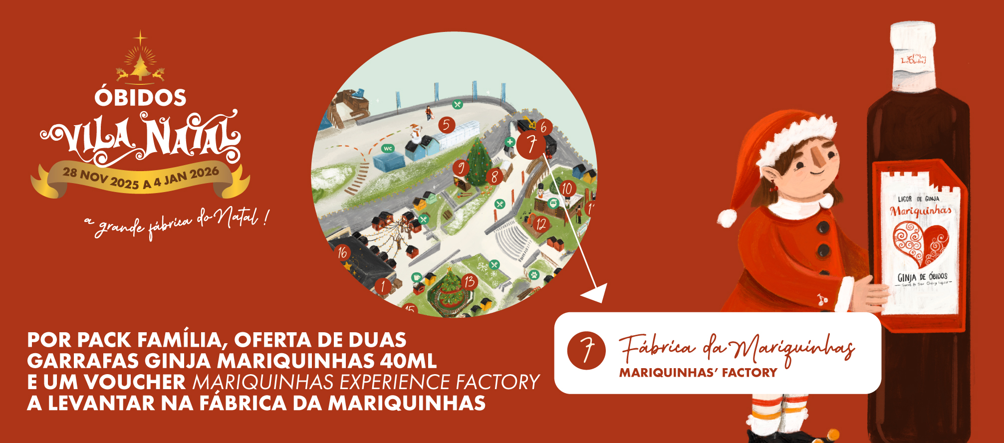 De 28 de novembro a 4 de janeiro, o Óbidos Vila Natal transforma-se numa Grande Fábrica do Natal, numa viagem mágica ao coração da época mais encantadora do ano. Durante todo o mês, as portas desta "fábrica" muito especial estarão abertas, revelando um mundo de fantasia, imaginação e muitas atividades pensadas para todas as idades. Todos serão convidados a tornarem-se duendes aprendizes, descobrindo os segredos e ofícios mágicos deste complexo de produção do Pai Natal.